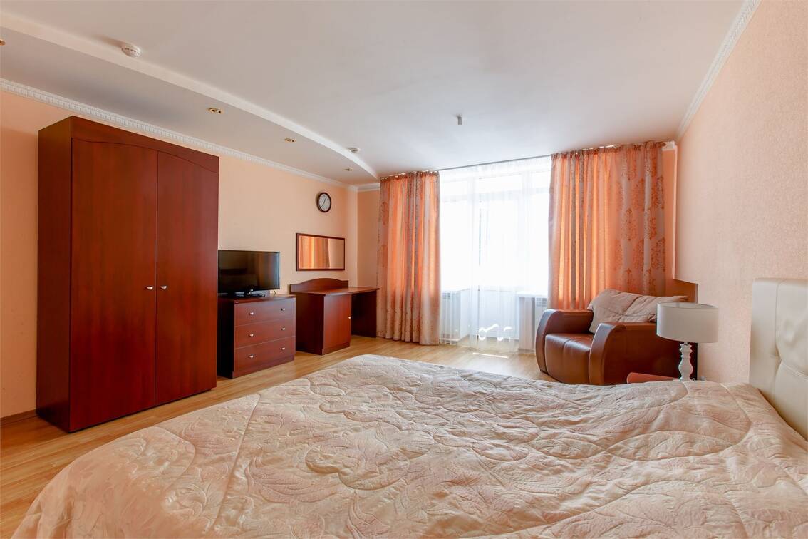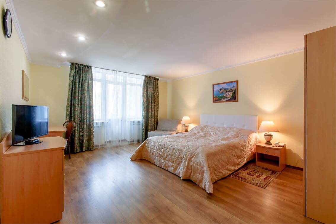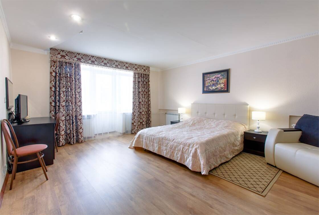 В гостиничном комплексе номер находится в главном корпусе на третьем этаже.
