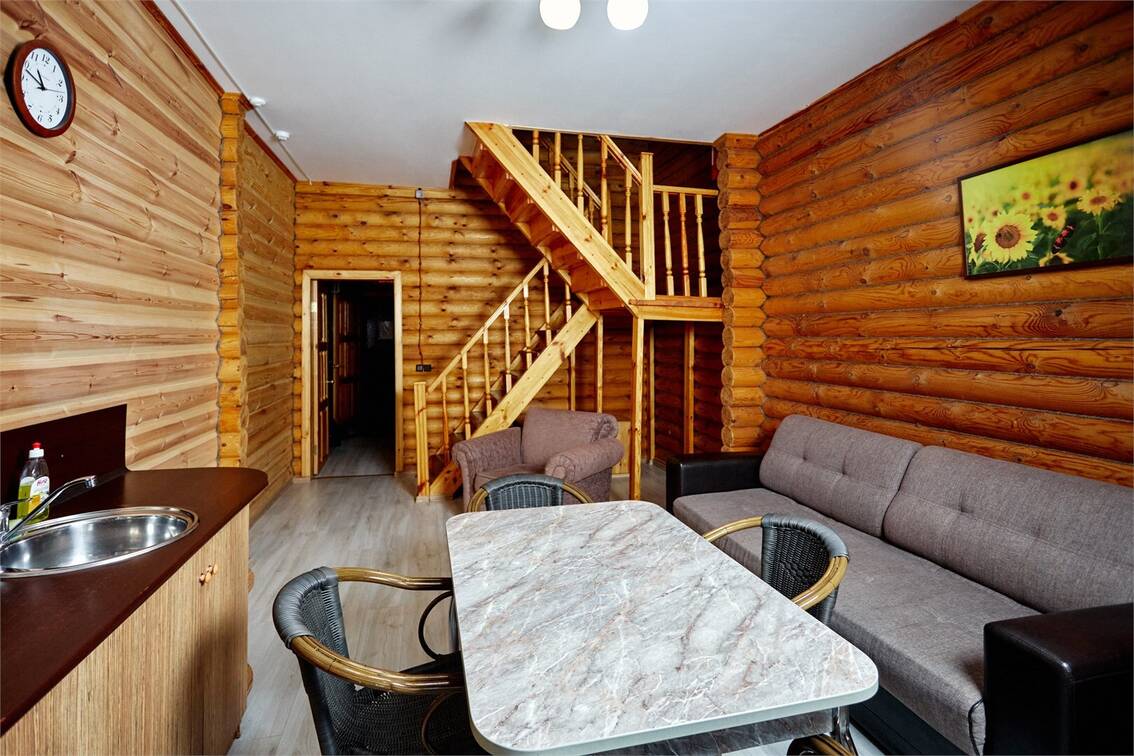 В гостиничном комплексе номер находится в главном корпусе на втором этаже.