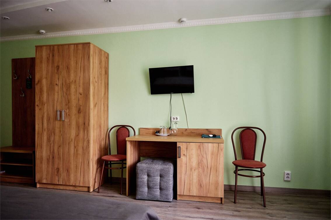 Ванная комната, Душ, Кровать двуспальная, Набор одноразовой косметики, Прикроватная тумбочка, Стол, Стул/Стулья, Телевизор, Туалетные принадлежности, Фен, Холодильник, Шкаф, Зеркало, Бесплатный Wi-Fi, Тапочки, Халат
