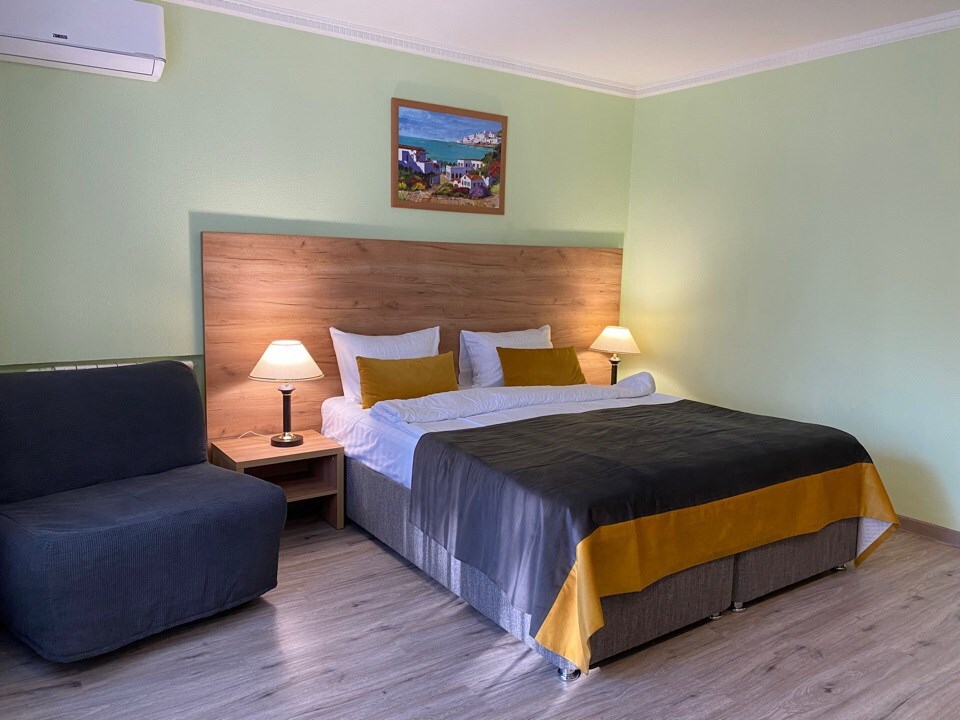 Ванная комната, Зеркало, Прикроватная тумбочка, Стол, Стул/Стулья, Телевизор, Туалетные принадлежности, Шкаф, Кровать двуспальная, Душ, Фен, Набор одноразовой косметики, Сейф, Халат, Холодильник, Диван, Бесплатный Wi-Fi, Кондиционер/Сплит-система, Тапочки